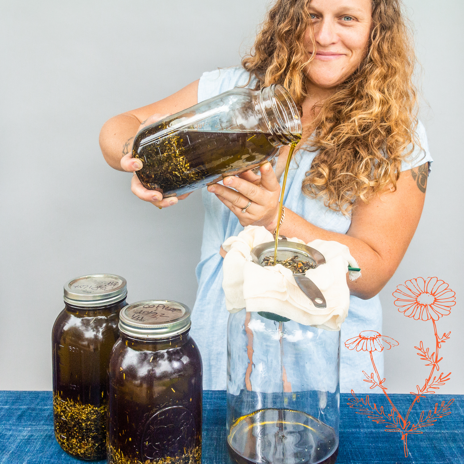 our six week process starts from herbs macerating in oil, made into balms, salves or oils.